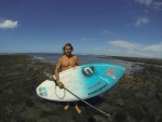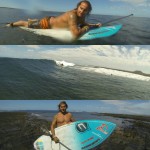Mi primera tabla la compramos a medias Pablo y yo; también puso dinero mi prima Bárbara porque no nos alcanzaba con nuestros ahorros. La tabla era un Single fin XPEEDIN, blanca y canales rosas muy chula…eso sí, de tercera o cuarta mano. A partir de ahí Pablo empezó a destacarse más en competición y yo me dedique a surfear todo lo posible y en todos los lugares y olas posibles. Cabe destacar un buen puñado de viajes inolvidables, baños en algunas de las mejores olas del mundo y el paso por diferentes modalidades de tabla de surf como el Longboard o los Fish. Así pasaron muchos años, cogiendo olas y trabajando en la tienda de surf que abrí con mis amigos Néstor y Delia en el año dos mil. Pero llego el día en que descubrí una nueva pasión que me iba a devolver a los comienzos del surf. El día que vi una foto de Laird Hamilton surfeando con remo, me dije, esto lo quiero hacer yo. En cuanto tuve la oportunidad comencé a practicar SUP de manera autodidacta, como siempre hicimos, con el surf o el skate, lo único diferente era que en Cantabria no había nadie practicándolo o por lo menos no en las playas y rías a las que iba yo, y por lo tanto no había nadie en quien fijarse.