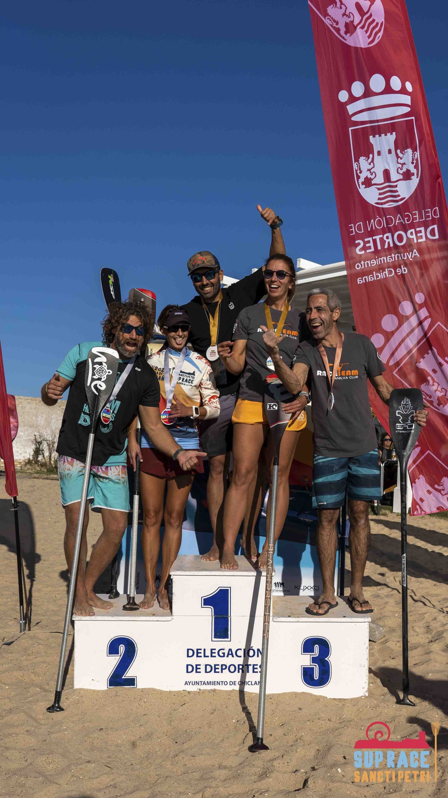 Tras el espectáculo vivido dentro y fuera del agua con las grandes actuaciones de dichas categorías, se realizó la entrega de premios frente al Chiringuito Bongo y junto a la presencia de las entidades locales. No faltaron los emocionantes sorteos gracias a los productos cedidos por parte de todos y cada uno de los colaboradores del Sancti Petri SUP Race. Como Fanatic, O´neill, Tiza suncream, Tricktionary de Fred Bonef, Rato surf shop, Vitamin Well, Redbull y Kuxxo sunglasses.