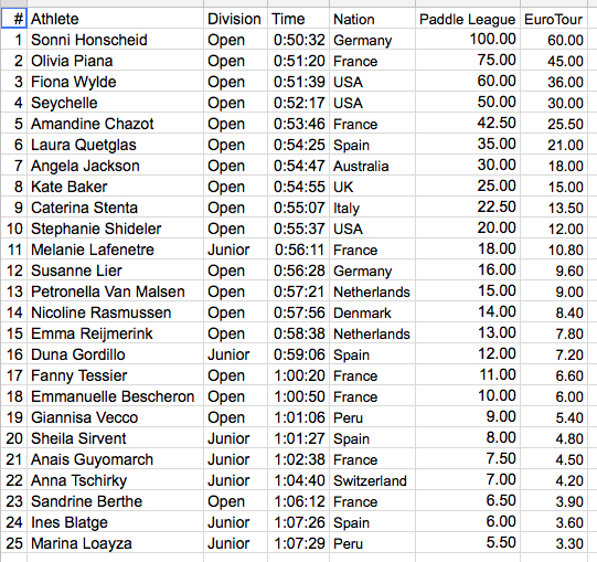 Resultados Oficiales Hossegor Paddle Games 2018