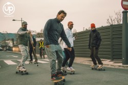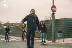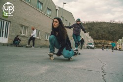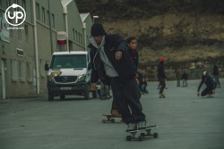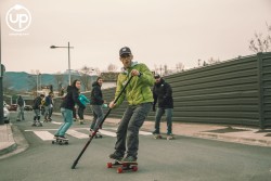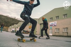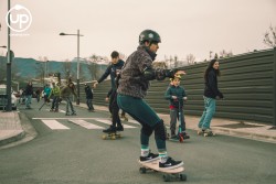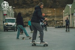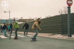 Tras una intensa mañana de deporte, y disfrutar de una comida campestre al aire libre para recuperar fuerzas, se reanudaron las actividades en el pueblo de Aínsa con una travesía de skate y paddle land, ideal para combatir el frío y mostrar grandes habilidades sobre el asfalto.