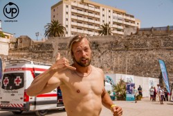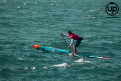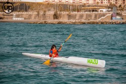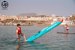 La categoría Élite y SUB 18 tenían previsto realizar un donwniwnd de Poniente, pero debido a las condiciones reinantes del día de la competición, tuvieron que optar por un recorrido diferente: saliendo de la playa de Recarga, bordeando toda la península de Santa Catalina para posteriormente remar sobre un leve downwind lateral hasta la roca del Toro, regresando a meta en la playa de la Ribera. Sin duda, los momentos con más tensión del recorrido, fueron en el cruce de la corriente que une el Océano Atlántico y el Mar Mediterráneo, y los rebotes de los acantilados…¡un espectáculo de la naturaleza que pusieron a prueba a todos los deportistas!