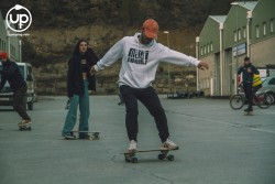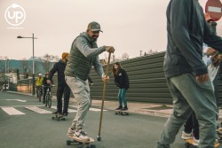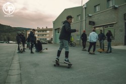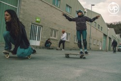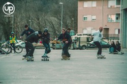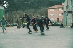 Tras una intensa mañana de deporte, y disfrutar de una comida campestre al aire libre para recuperar fuerzas, se reanudaron las actividades en el pueblo de Aínsa con una travesía de skate y paddle land, ideal para combatir el frío y mostrar grandes habilidades sobre el asfalto.
