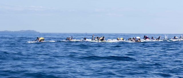 Desde el inicio se definió un grupo de 7 riders, entre los que estaban Georges Cronstead, Michael Booth, Kai Lenny y los brasileños. Cerca de Musket Cove, el australiano se puso en la cabeza de la carrera y con un altísimo ritmo. Hasta que rompió grupo y remó en solitario los pocos kilómetros que le quedaban para llegar a la meta. El francés Titouan Puyó fue el que también salió del grupo para dar caza al australiano, pero su intento ha sido fallido. Finalmente Michael Booth se llevó la medalla de oro, seguido de Titouan puyó la de plata, George Cronstead de Tahití la de bronce y el francés Arthur Arutkin la de cobre.