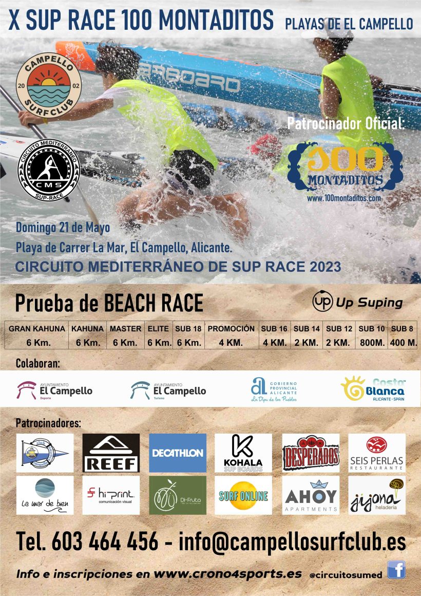 Nos complace anunciar que el próximo domingo 21 de mayo de 2023, tendrá lugar la X SUP Race 100 Montaditos Playas de El Campello (Alicante). El evento se realizará en la playa de El Carrer La Mar, El Campello.